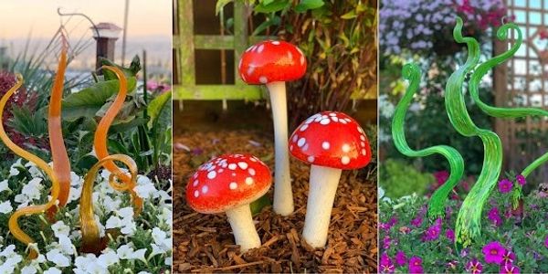Những tiểu cảnh thủy tinh nghệ thuật xen kẽ với các loài hoa được trồng khéo léo khiến ai nhìn thấy vườn của anh Khánh Vũ cũng phải trầm trồ